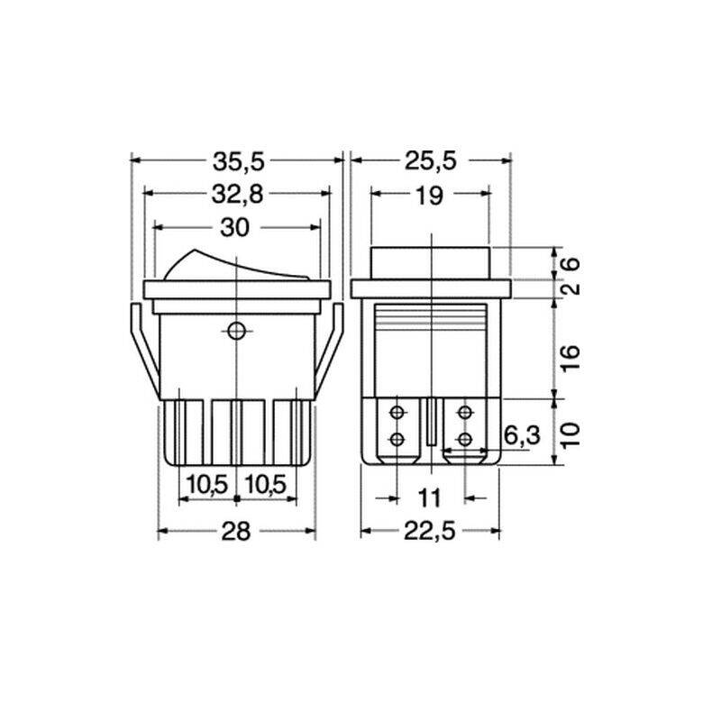 Descrizione: Deviatore bipolare luminoso rosso a 2 scambi 6 CONTATTI