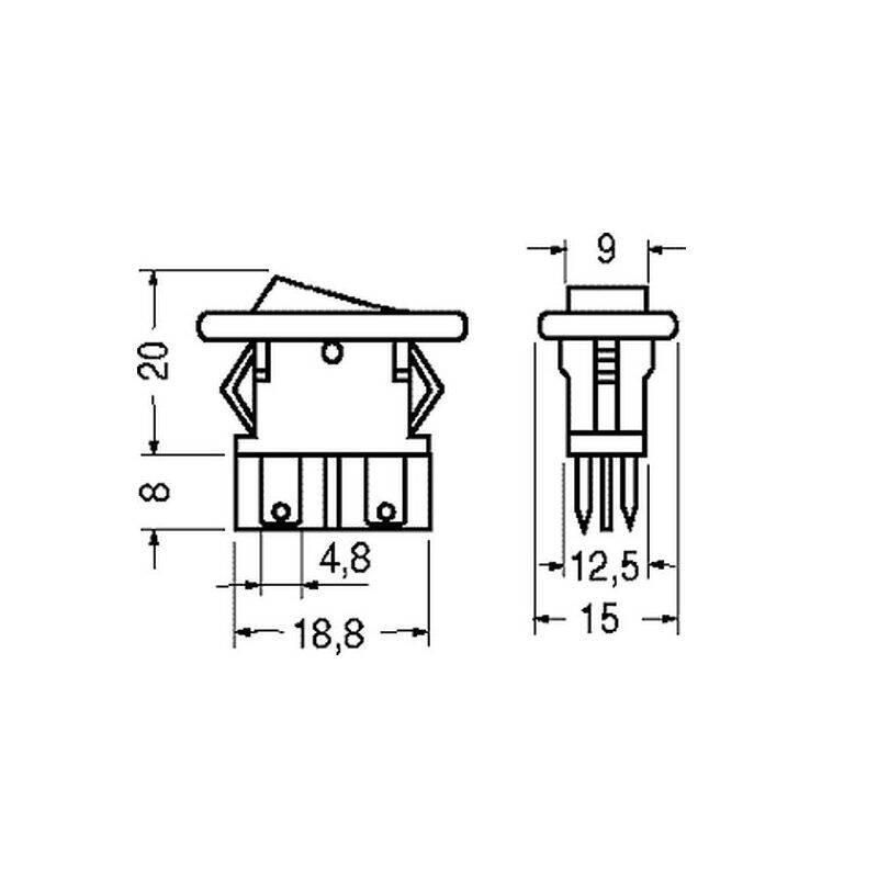INTERRUTTORE LUMINOSO BIPOLARE ROSSO 6A 250Vac ON-OFF