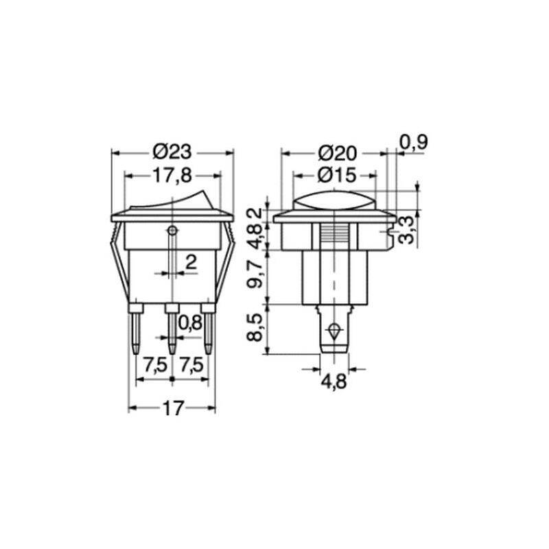 Dimensioni: spessore fissaggio 4,8mm altezza 25mm 3,3mm pulsante