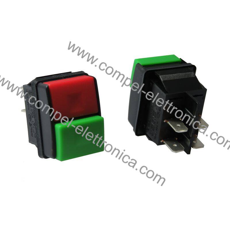 INTERRUTTORE A DOPPIO PULSANTE 10A 250VAC DPST ROSSO/VERDE