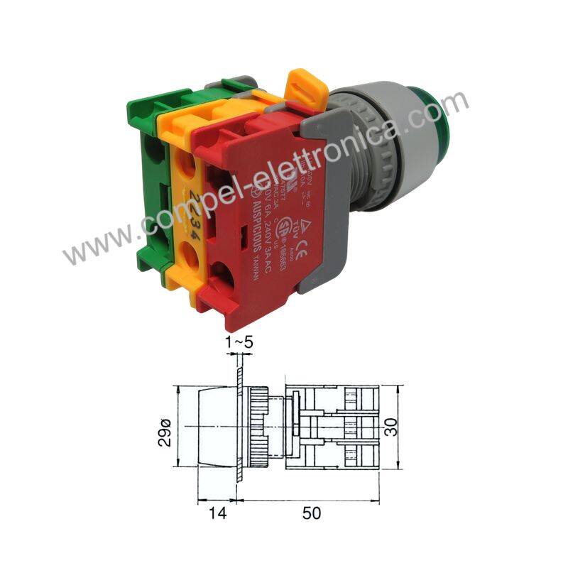 PULSANTE 2 POSIZIONI LUMINOSO VERDE 240VAC 3A NC/NO