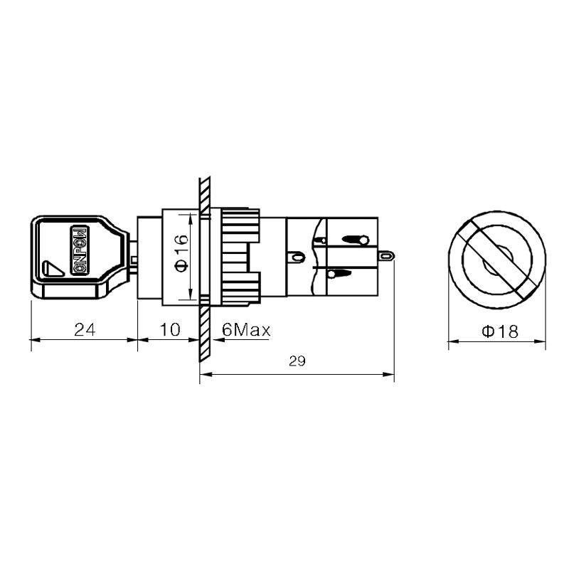 INTERRUTTORE A CHIAVE 2 POSIZ. 6 PIN, ESTRAIBILE SEMPRE (ON-OF)(OF-ON)