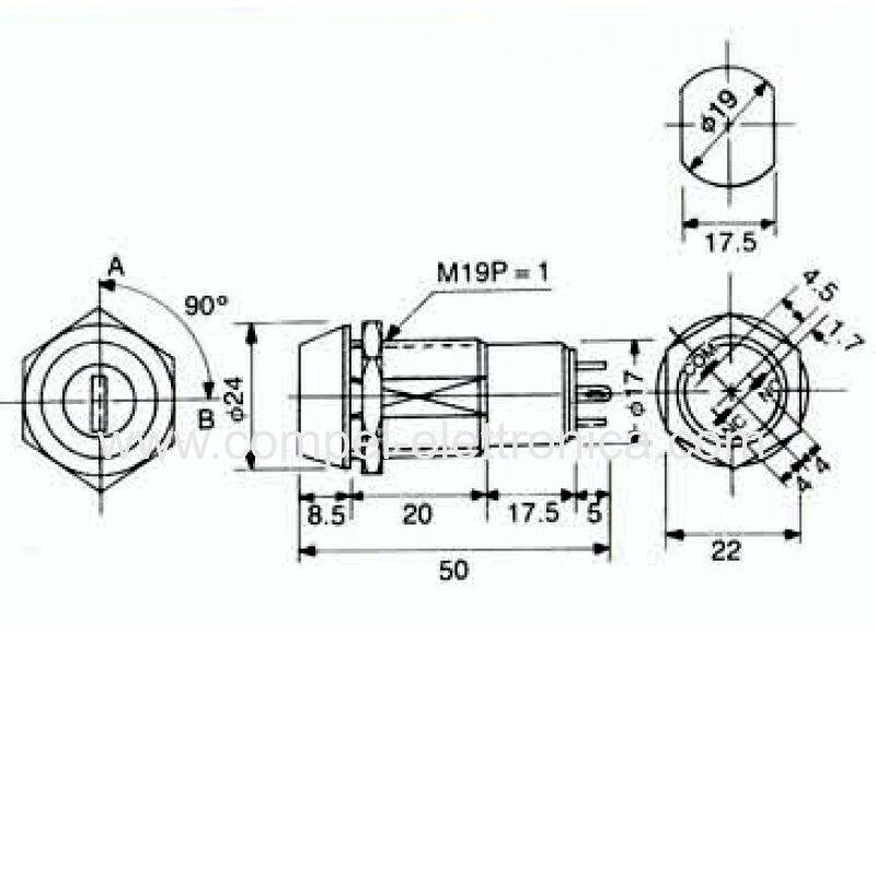 Descrizione: Commutatore interruttore d'accensione con chiave estraibile SOLO nella posizione estrema sinistra con contatto aperto.