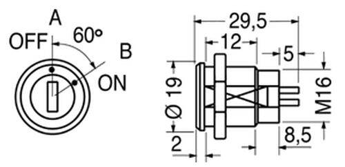 INTERRUTTORE A CHIAVE MINIATURA ESTRAIBILE 2 POSIZIONI ON/OFF D.15,6mm