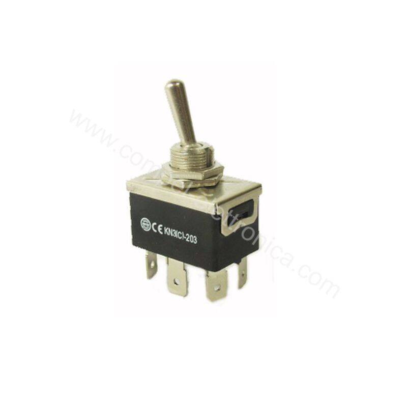 Descrizione: Deviatore 2 scambi 3 posizioni. ON-OFF-ON (stabile-riposo-stabile)
