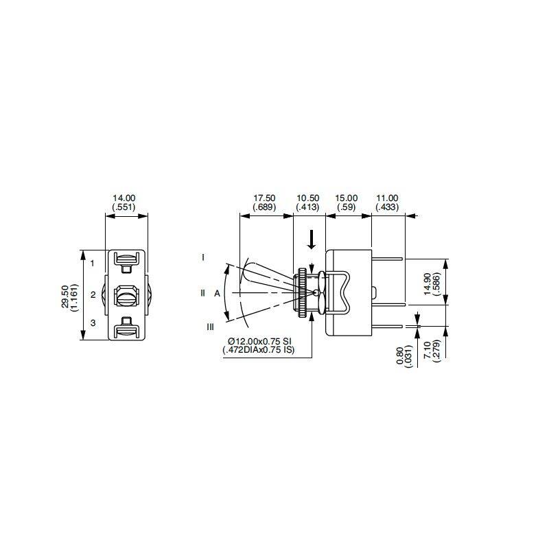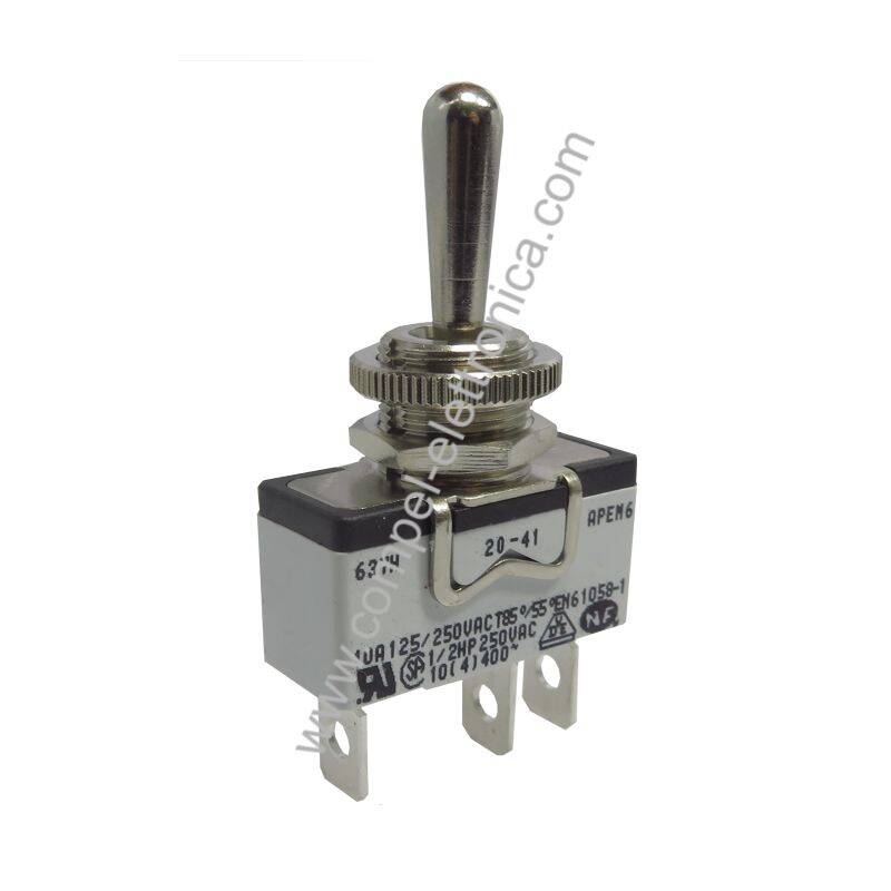PULSANTE A LEVA 3 POSIZ (ON)-OFF-(ON) 15A 250V A PANNELLO FASTON A VITE