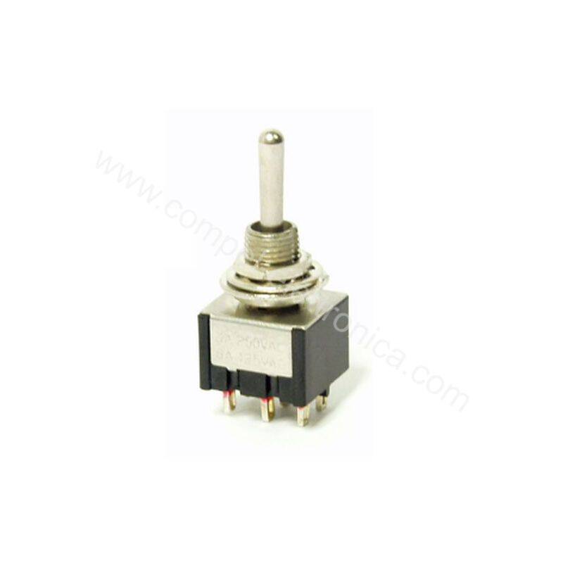 Descrizione: Deviatore miniatura 2 scambi Posizioni 3, posizioni instabili (ON)-OFF-(ON) posizione zero centrale.stabile