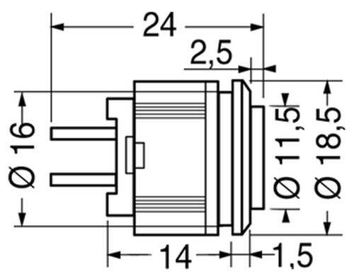 Montaggio : a pannello con ghiera spessore pannello max 5mm
