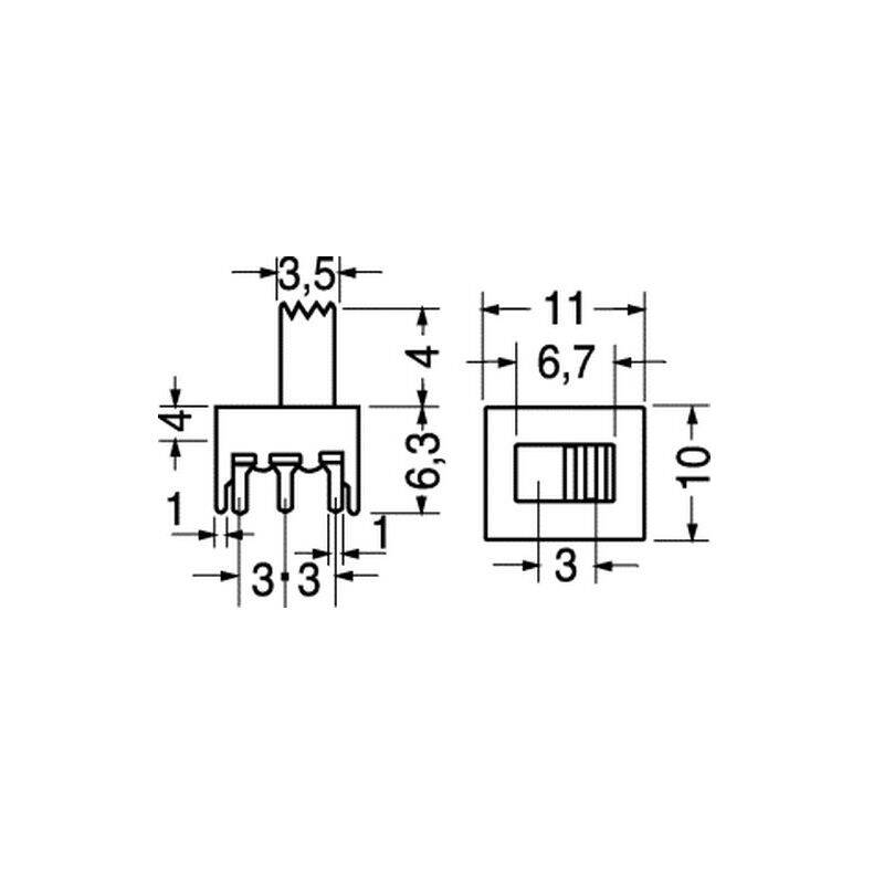 Dimensioni: profondità 10mm altezza 6,3mm leva 3,5mm- lunghezza 11mm