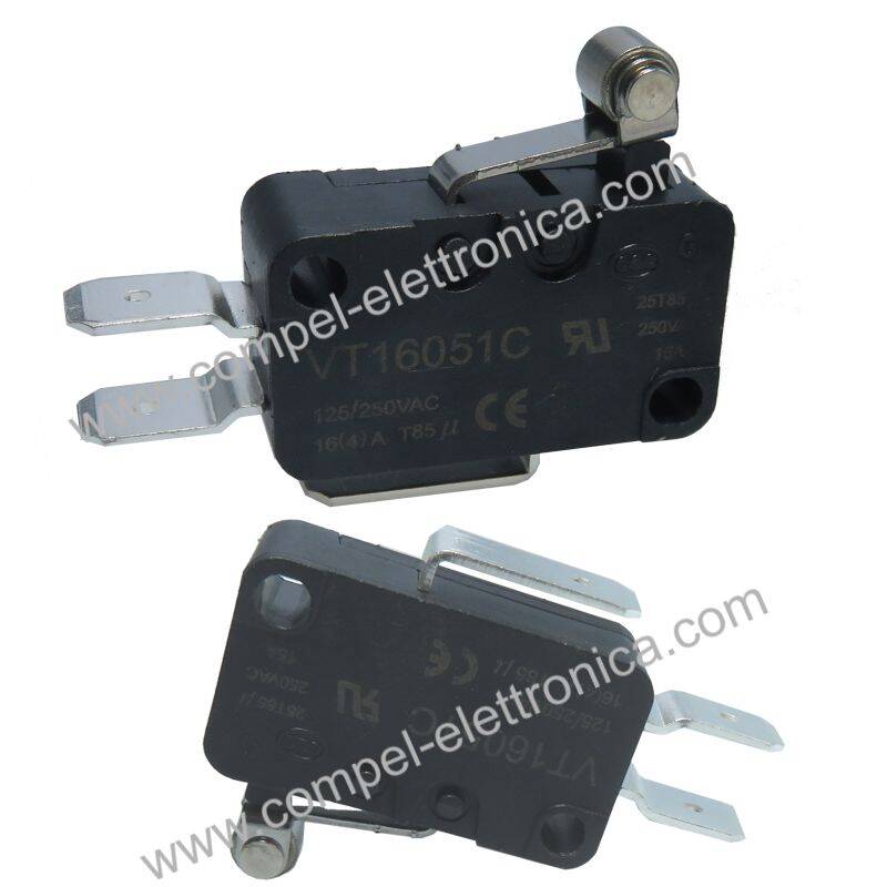 MICRODEVIATORE SWITCH 16A 250Vac SPDT LEVA 14MM E ROTELLA