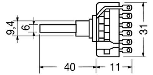 Descrizione: Commutatori rotativi ad 1 settore 3 posizioni 4 vie