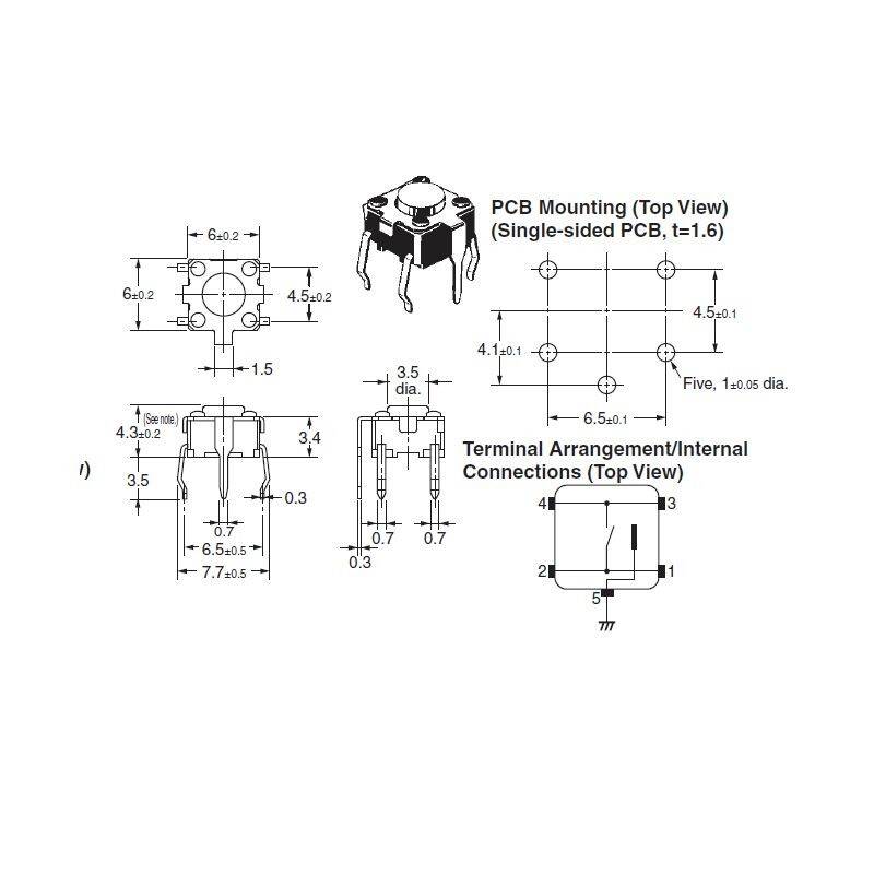 MINI PULSANTE 4 PIN C.S. 6X6X4,3H FORZA TASTINO 1,47N