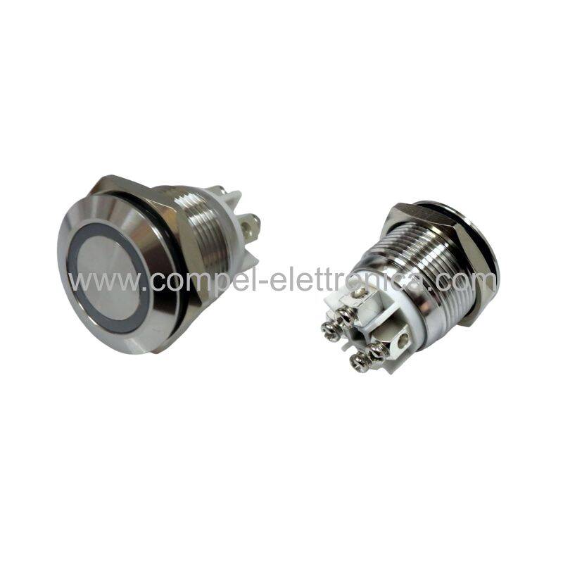 Descrizione: Pulsanti antivandalismo luminoso con autoritorno normalmente aperto a 1 posizione OFF (ON) CROMATO-ACCIAIO