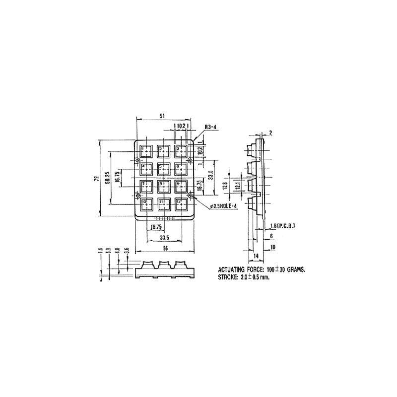 Descrizione: Tastiera numerica universale nera in plastica con 12 tasti