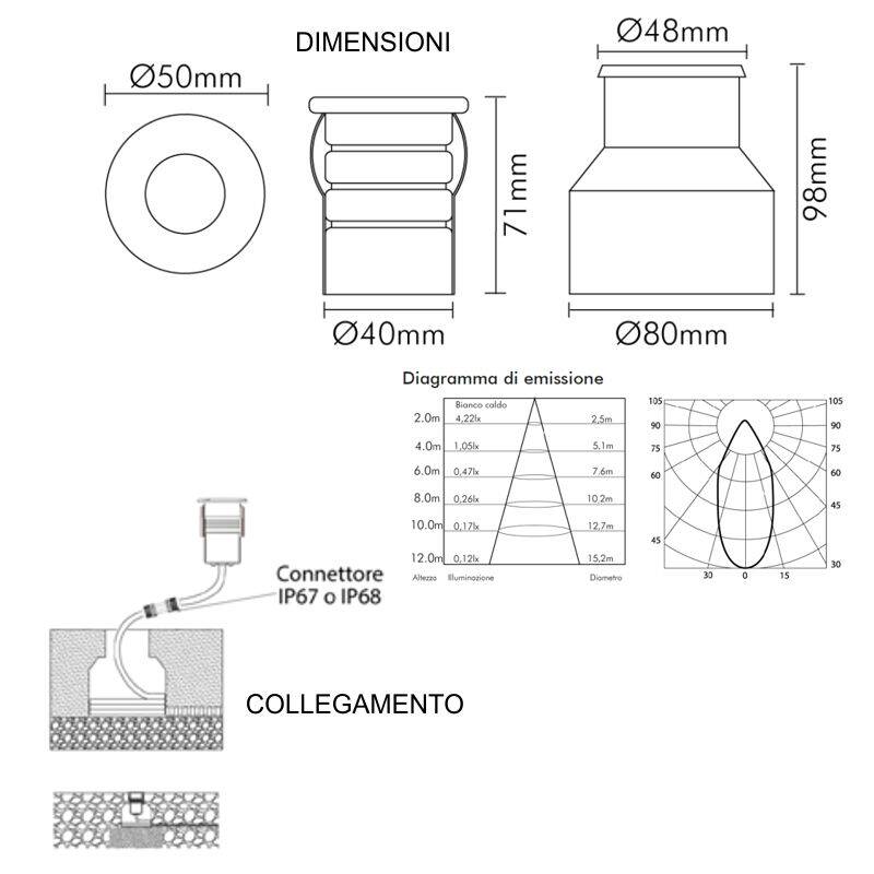 Descrizione: Faro led da esterno ad incasso Bianco Caldo IP67.