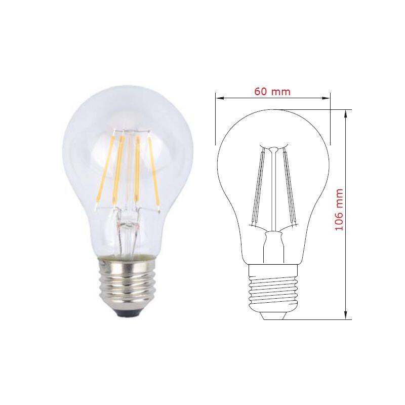 LAMPADA A LED E27 230V 6W 3K BULBO TRASPARENTE FILAMENTO CERAMICO