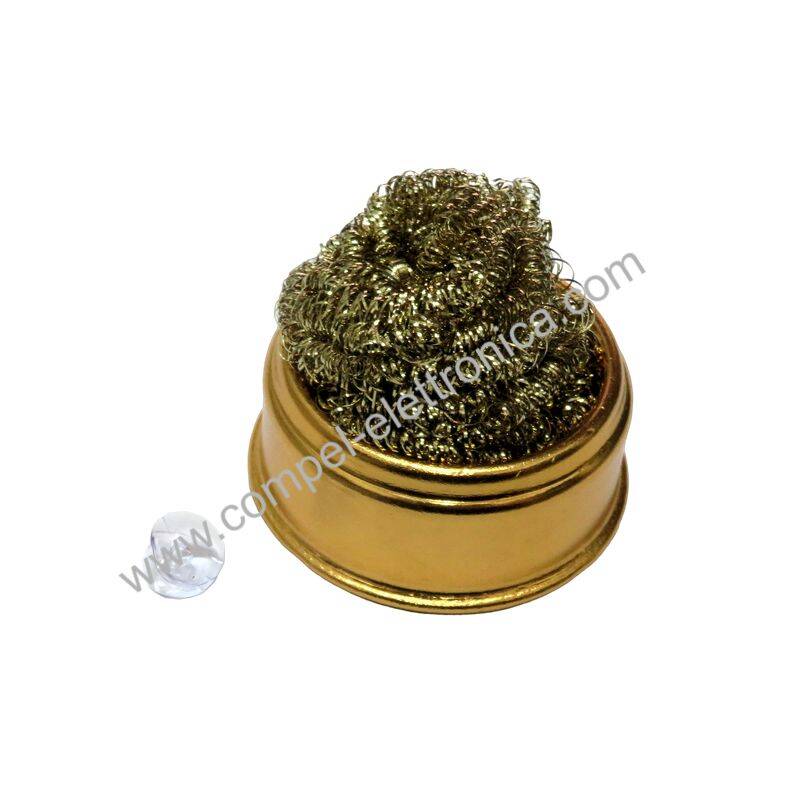 Descrizione: Paglietta metallica morbida con supporto per la pulizia delle punte saldanti. Con ventosa per il fissaggio al tavolo da lavoro