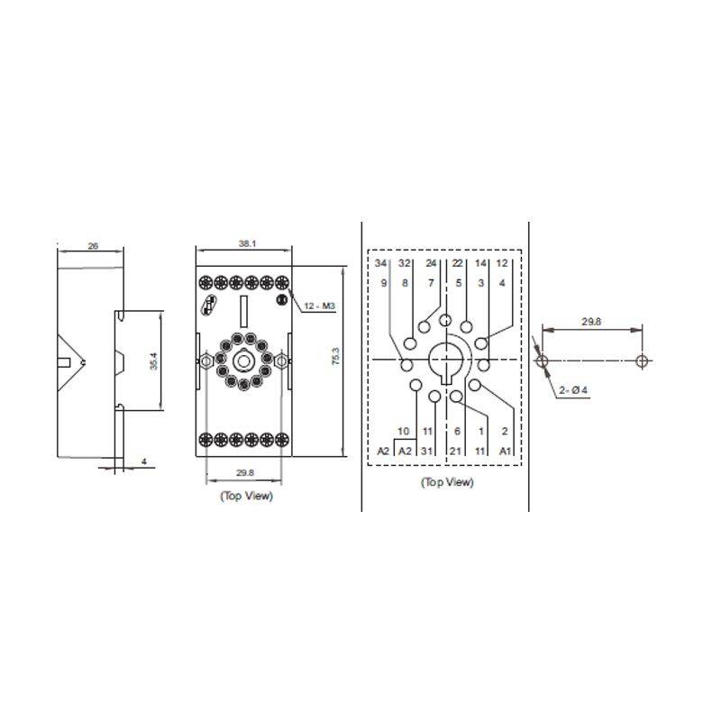 Descrizione: Zoccoli guida DIN sul pannello per relè serie HF pin in tondo