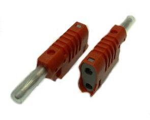 Descrizione: Spine banane di sicurezza a norme IEC 1010 ISO 9001. Corpo in resina termoplastica autoestinguente con tubetto trasparente retrattile, trattenuta in permanenza da una molla in posizione di sicurezza.