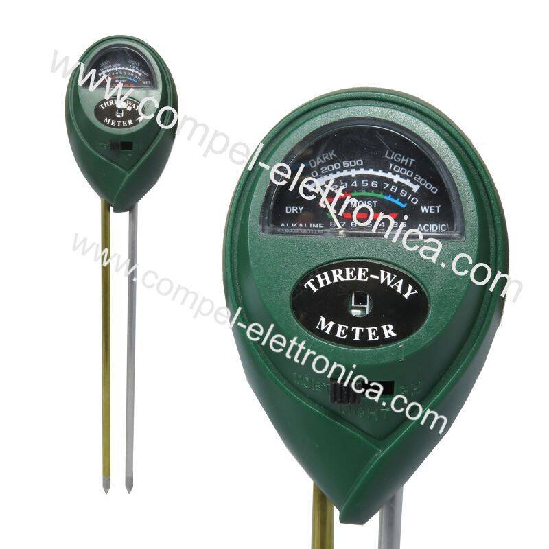 MISURATORE DI TERRENO A TRE VIE / LUCE SOLARE / PH /UMIDITA' -SONDA 18CM