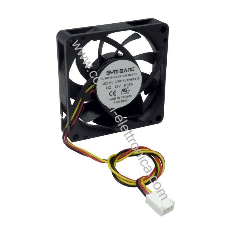 Descrizione: Ventola 70X70X15H con bronzine tachimetrica. Assiale. Completa di connettore.