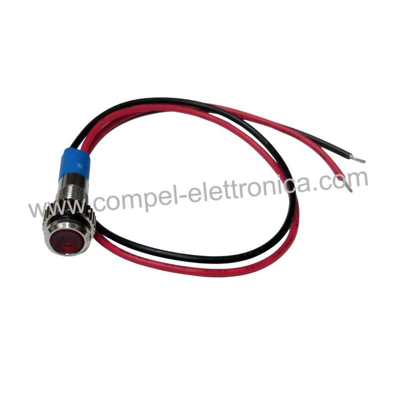 SEGNALATORE 12Vdc/Vac LED ROSSO D.7,8 MM PIATTO METALLO A PANNELLO IP20