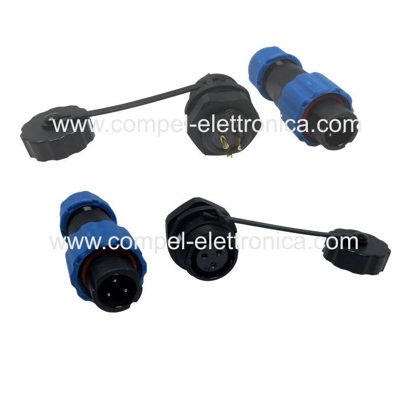 Descrizione: Connettore waterproof Spina SP13 volante maschio 3 poli e Presa SP13 pannello femmina 3 poli
