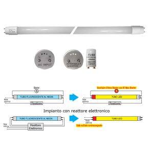 Collegare L e N dalla parte della marchiatura come indicato in figura. Una connessione diversa causa CORTO CIRCUITO danneggiando irreparabilmente il tubo led. Il danno per uso improprio non è coperto da garanzia.
