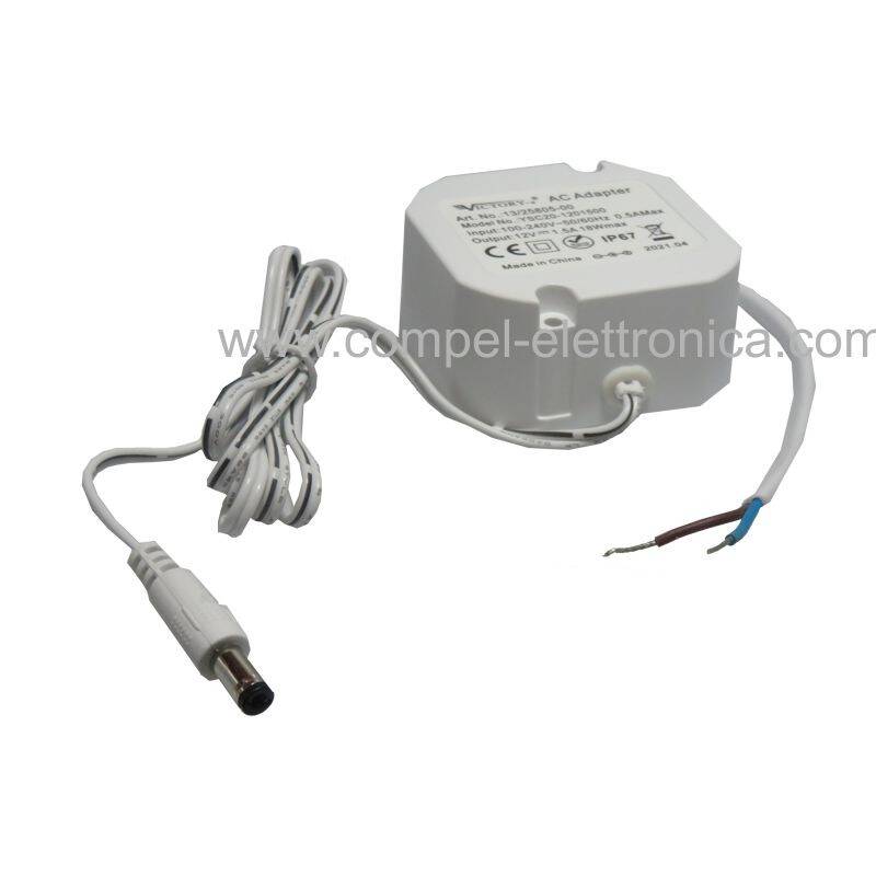 ALIMENTATORE SWITCH PER LED 12V 18W 1,5A/IP67 CON PRESA DC 5,5/2,1MM