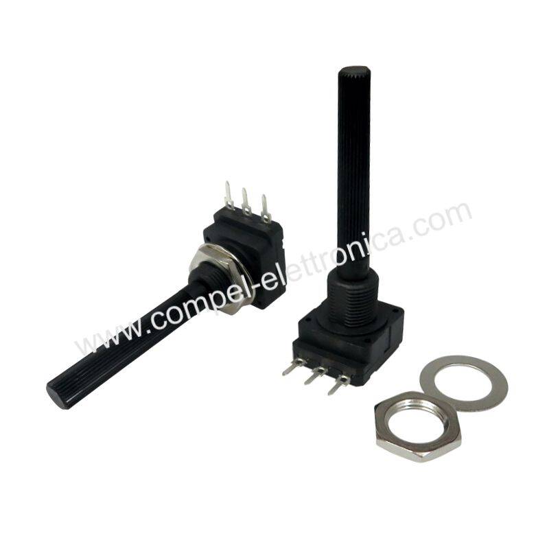 Descrizione: Potenziometri a strato carbone a variazione lineare ISOLATI, alberino mono giro. Senza interruttore