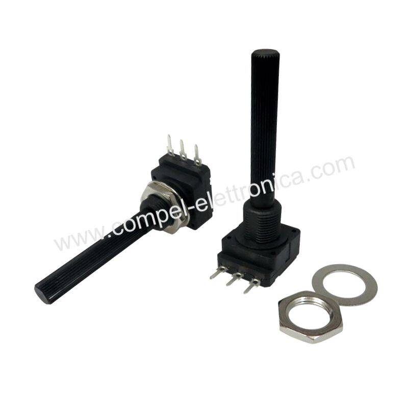 Descrizione: Potenziometri a strato carbone a variazione lineare ISOLATI, alberino mono giro. Senza interruttore