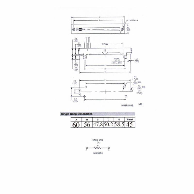 Descrizione: Potenziometri slider mono a strato di carbone. Lineare