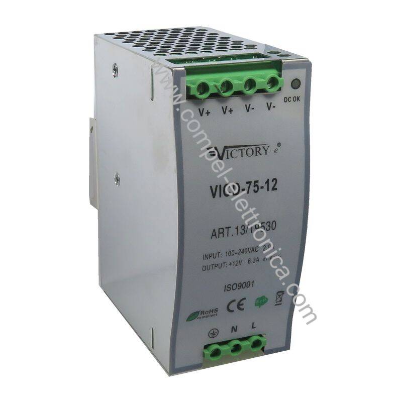 ALIMENTATORI GUIDA DIN 12VDC 75W 6,3A 1 OUT TENSIONE COSTANTE