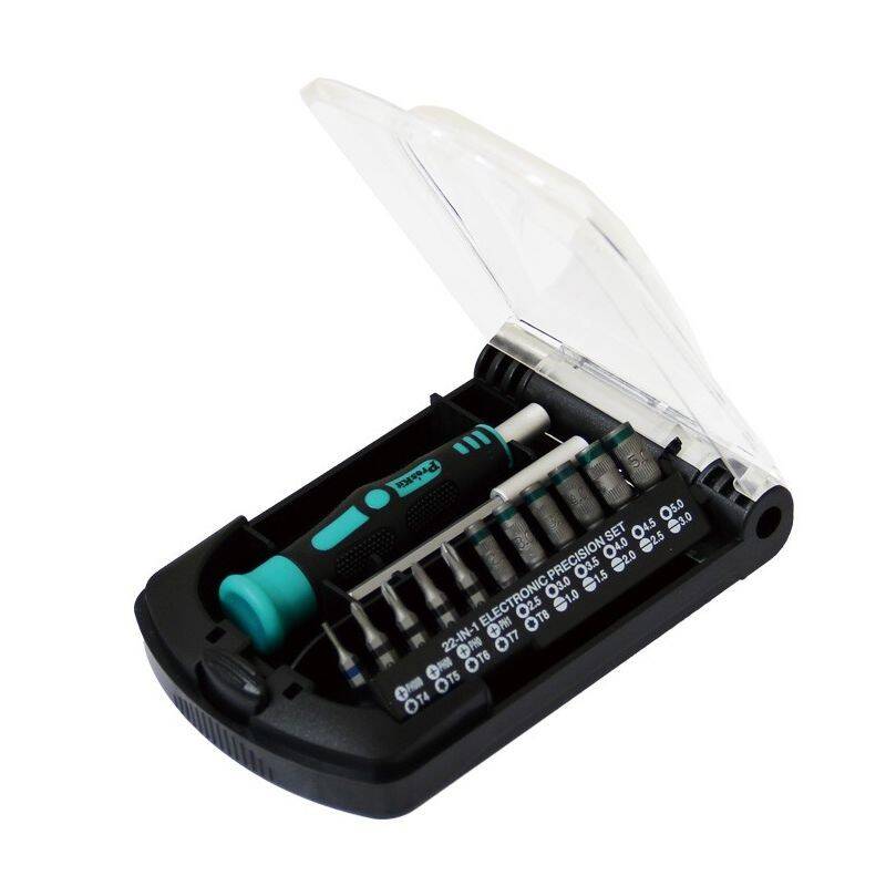 Descrizione: SET 22 IN 1 CACCIAVITE DI PRECISIONE SD-9315 in custodia con apertura automatica.