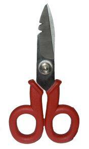 Descrizione: Forbice isolante per elettricista con spelafilo nella lama