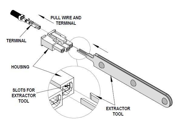 Questo estrattore è stato disegnato per rimuovere i pin e le prese contatti dai connettori MINI-FIT
