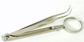 Descrizione: Pinzetta curva ulta sottile con lente 3X diametro 32 mm