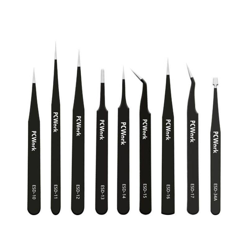 KIT PINZETTE DI PRECISIONE IN ACCIAIO 9 PEZZI PCW08G PCWork