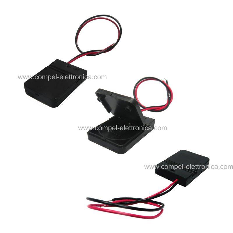 PORTABATTERIE PER 1 PILE BOTTONE CR2032 CON INTERRUTTORE 2 FILI ORIZZ.