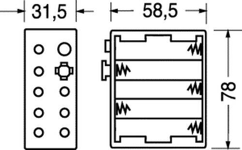 PORTABATTERIE PER 10 STILO AA VERTICALE CON CONTATTO A BOTTONE (CLIP)