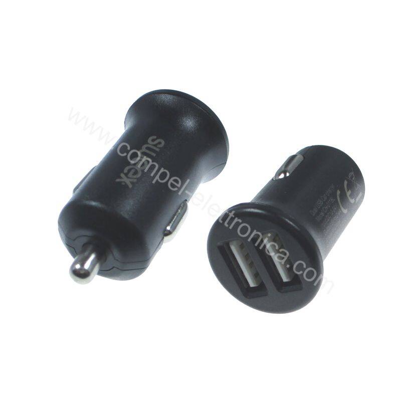 Descrizione: Convertitore di tensione da spina per accendisigari a due prese USB/A. NERO