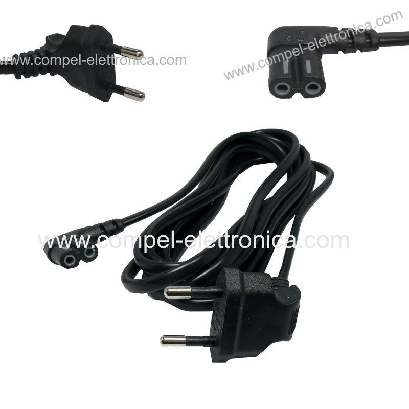 Descrizione: Cavo alimentazione presa C7 a 8 con scanalatura angolare 90° IEC-320-C7 spina europea 10A angolare 90°