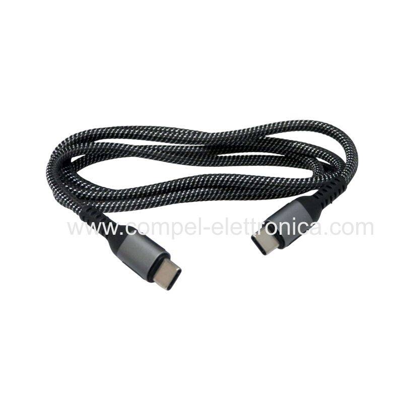CAVO USB C/USB C 2.0 MASCHIO-MASCHIO 1MT GRIGIO A. QUALITA' tessile 100W