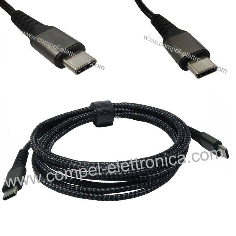 CAVO USB C / USB C 2.0 MASCHIO-MASCHIO 2MT NERO - ALTA QUALITA' tessile