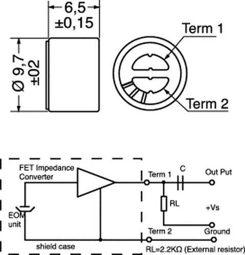 CAPSULA MICROFONICA d.9,7x6,5 20-16Khz