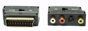 Descrizione: Adattatore da spina scart 21P a 3 RCA FEMMINA con interruttore / commutatore