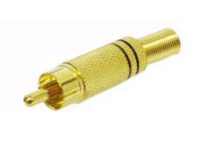Descrizione: Spina coassiale RCA dorate con molla guidacavo. Isolamento in bachelite. Anello rosso