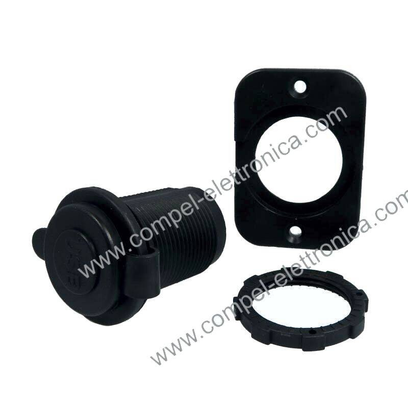 DOPPIA PRESA USB DA PANNELLO 5V 2,1A/12V-28V AD INCASTRO-CON TAPPO IP65