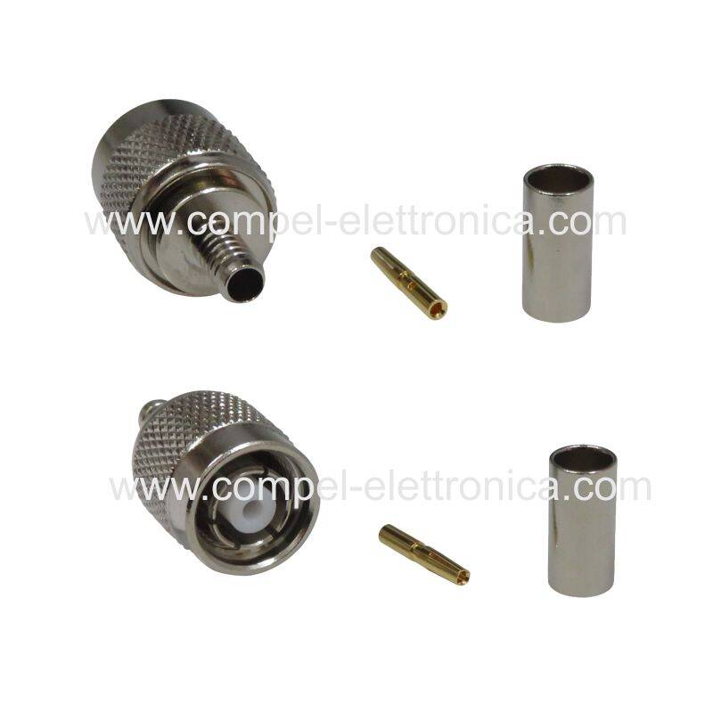 Connettore maschio TNC da crimpare con pin inverso per cavi RG58 e similari
