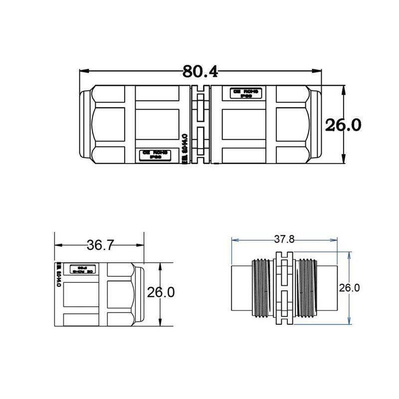 Descrizione: Giunto dritto impermeabile IP68 per 2 CAVI A 3 POLI - giunti a tenuta stagna - Connettori Waterproof